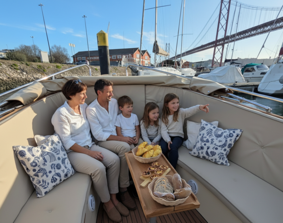 Ao longo do Tejo, Lisboa revela-se de um ângulo privilegiado: amplo, luminoso e cheio de contrastes. As vistas sobre a cidade e a margem sul são simplesmente maravilhosas, criando o cenário perfeito para fotografias memoráveis. Seja em família ou com amigos, cada momento a bordo torna-se especial — daqueles que se partilham, se guardam e ficam para sempre na recordação.