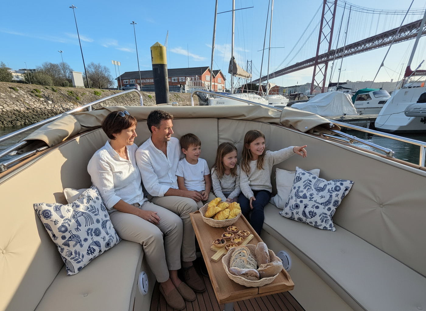Ao longo do Tejo, Lisboa revela-se de um ângulo privilegiado: amplo, luminoso e cheio de contrastes. As vistas sobre a cidade e a margem sul são simplesmente maravilhosas, criando o cenário perfeito para fotografias memoráveis. Seja em família ou com amigos, cada momento a bordo torna-se especial — daqueles que se partilham, se guardam e ficam para sempre na recordação.